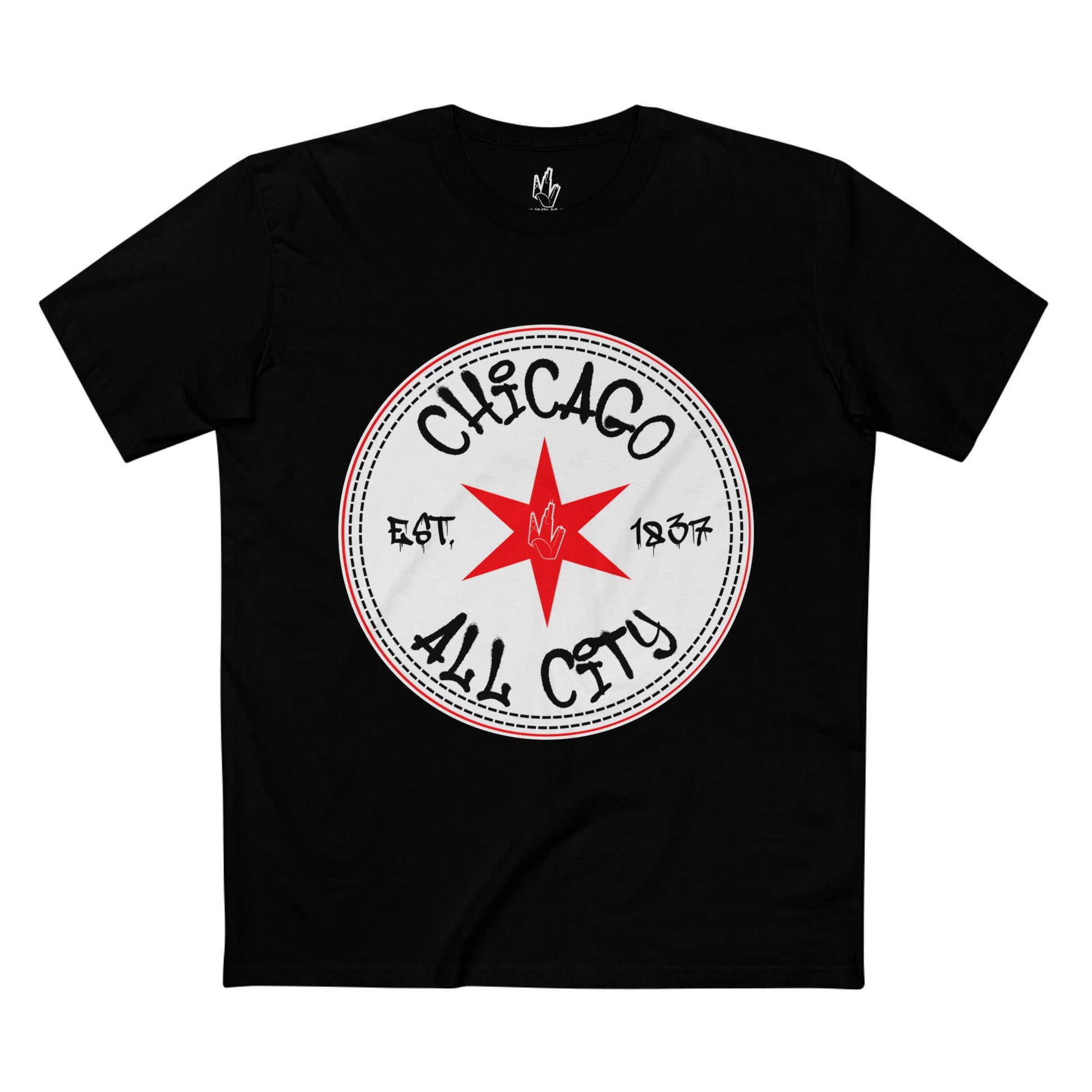 This design flips a classic circle badge into a tribute to the greatest city on earth. Starred up with that unmistakable Chicago flavor—loud, proud, and not for the soft. Clean lines, tough attitude, and straight-up block energy.
