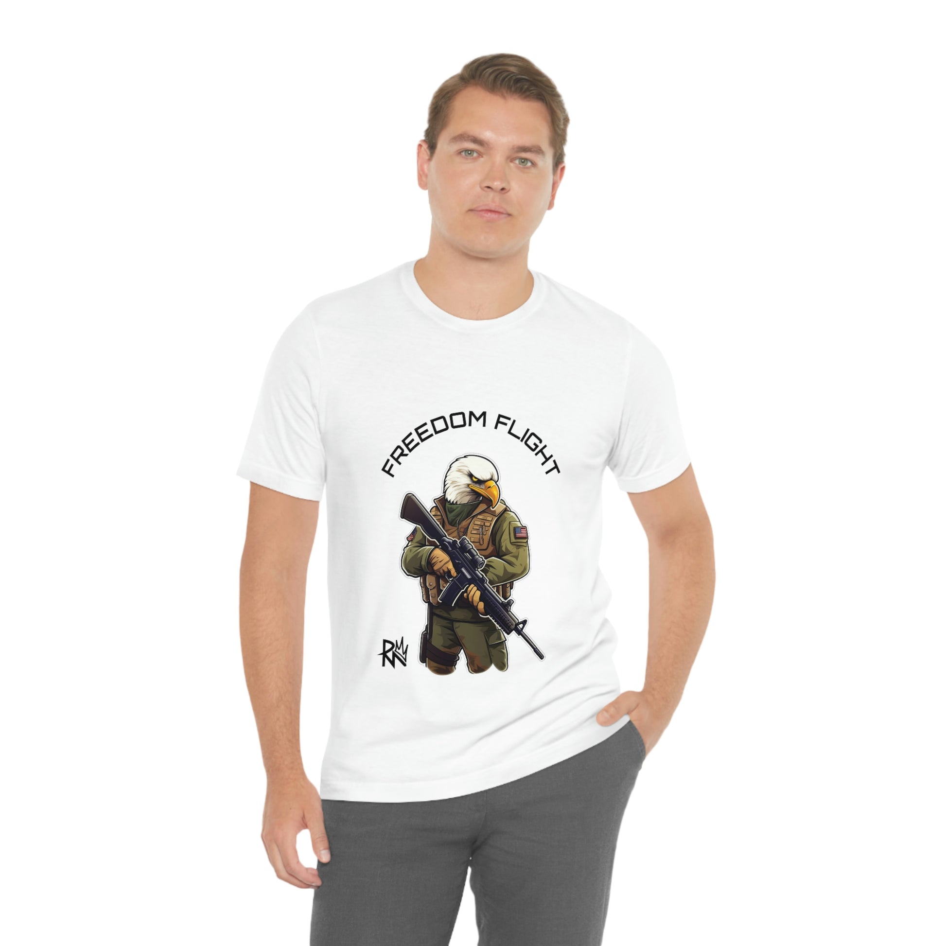 Introducing our new t-shirt featuring an American Bald Eagle dressed as a soldier holding an M16 rifle. Crafted from 100% cotton, it is soft, durable, and comfortable. This t-shirt sends a powerful message of freedom and patriotism, honoring the sacrifices made by those who fought for our country's independence. Show your love for your country and support for our troops with this iconic symbol of bravery and liberty. Get yours today and make a statement of pride and patriotism.